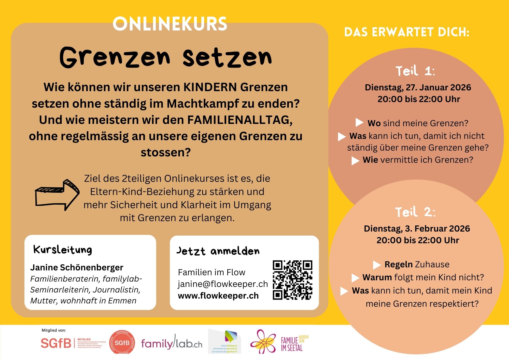 Wie können wir unseren KINDERN Grenzen setzen ohne ständig im Machtkampf zu enden? Und wie meistern wir den FAMILIENALLTAG, ohne regelmässig an unsere eigenen Grenzen zu stossen?